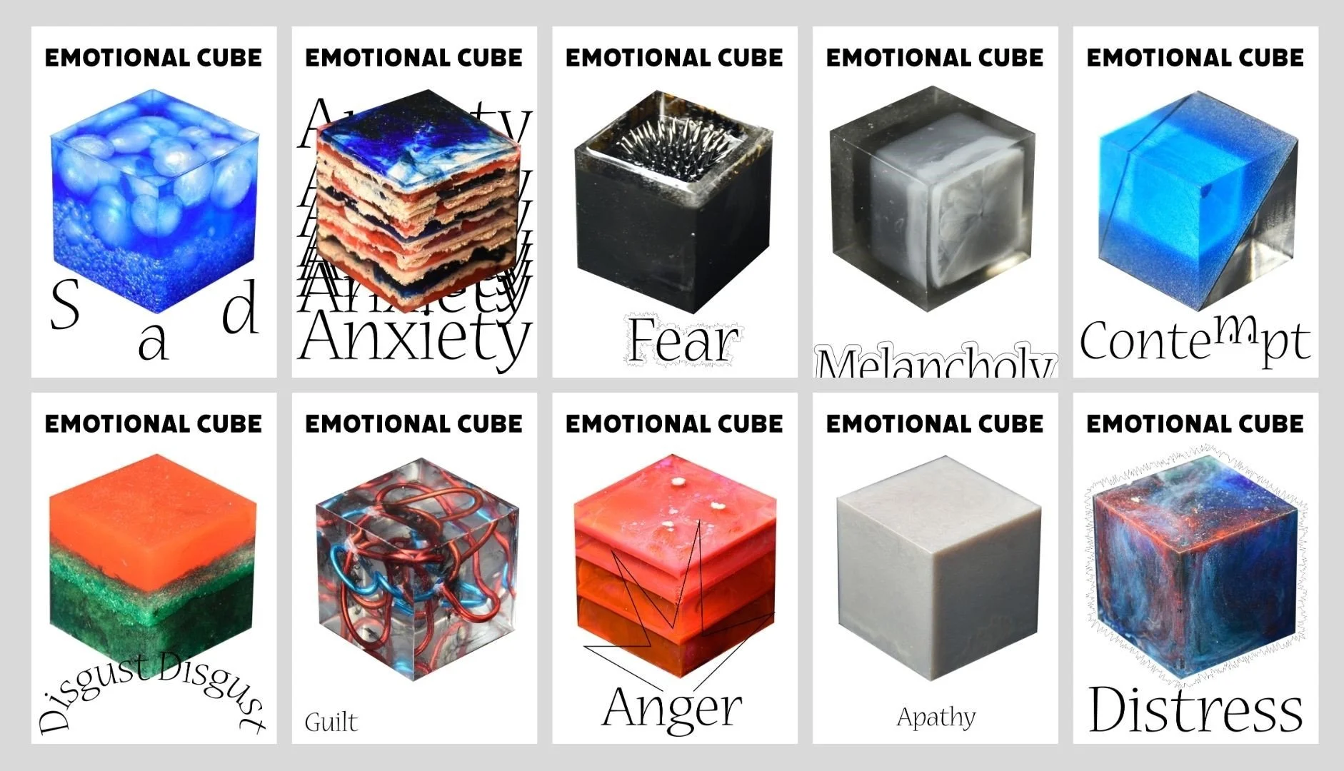 Another project, Emotional Cube, explores the multidimensionality of human emotions. Zhongqi materialised negative emotions into a cube, with each surface representing a visual and tactile exploration of a different emotional state. Through this approach, she translates intangible emotional experiences into tangible forms, offering comfort through artistic materialisation. Her unique perspective and incisive thinking make her work a bridge between emotion, media, and sociocultural discourse.